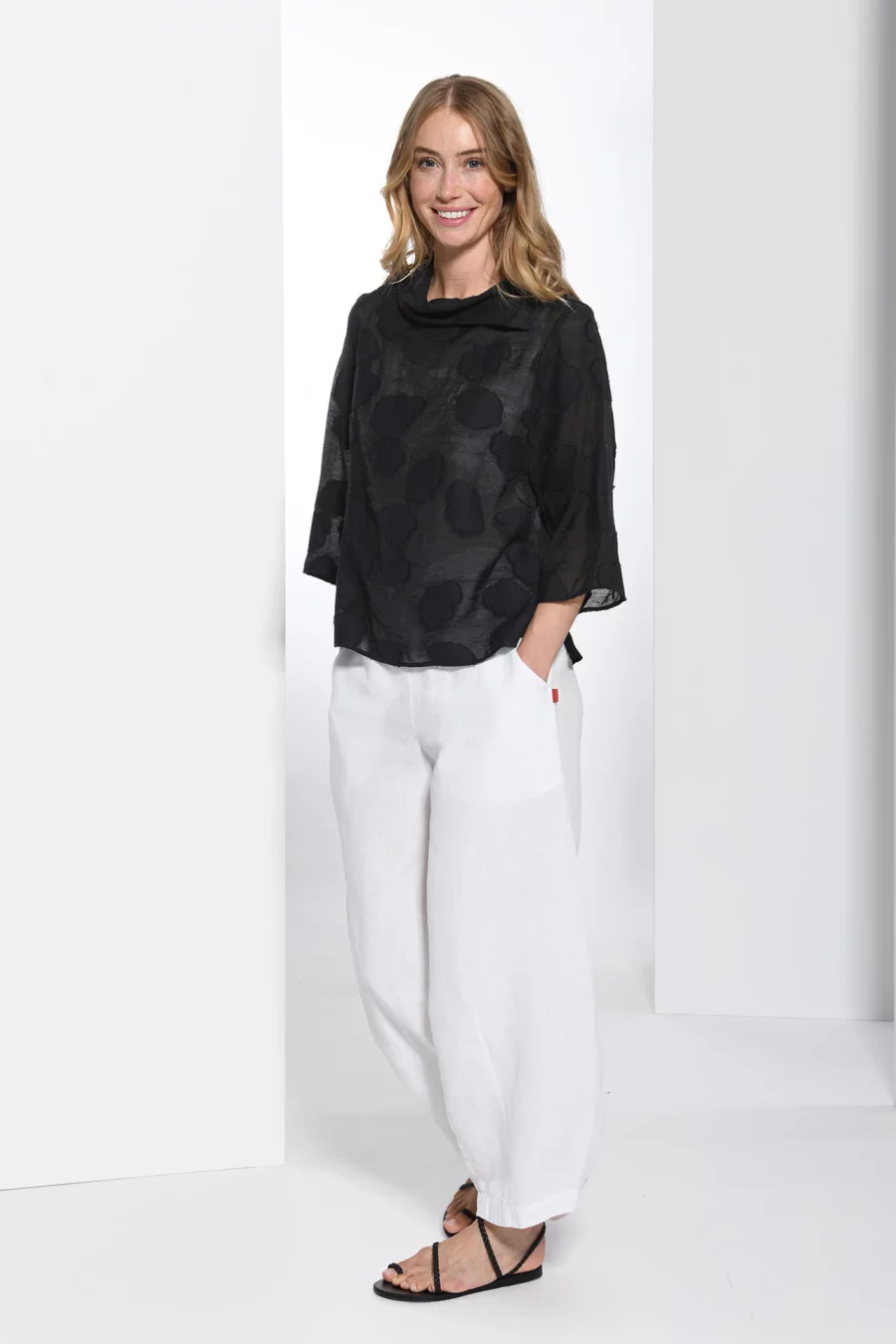 Fil-Coupé heißt auf Deutsch wörtlich „abgeschnittene Fäden“. Unser Fil-Coupé Stoff ist ein Jacquardstoff, der mit einer speziellen Technik aus einer feinen Viskosemischung hergestellt wird.