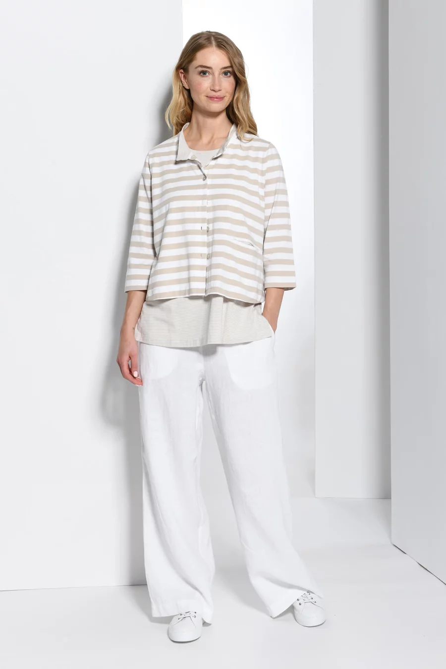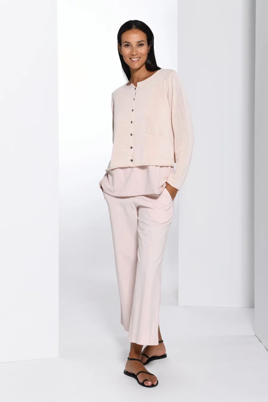 Für unsere hochwertigen, sommerlichen Strickmodelle setzen wir überwiegend auf natürliche Garne wie Baumwolle, Viskose und Leinen. Diese Materialien sorgen besonders an warmen Tagen für ein angenehmes Hautgefühl. Die feinen, fließenden und teilweise texturiert gestrickten Oberflächen überzeugen mit speziell entworfenen Dessinierungen, die nur bei uns erhältlich sind. Alle Modelle sind regulär in Form gestrickt. Bei dieser hochwertigen und nachhaltigen Stricktechnik entstehen keine Zuschnittreste.